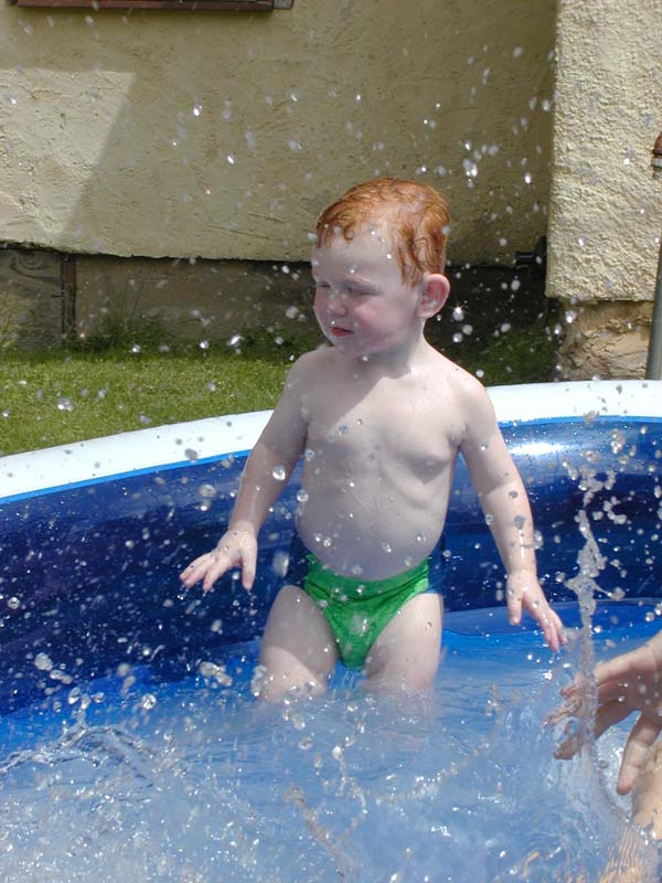 We were outside almost the entire month of July! We ended up having to lock all the doors because every time we'd turn around Christian would be trying to escape. He always wanted to go out and play, no matter what. He even tried his first piece of corn on the cob, but he mostly just licked it.